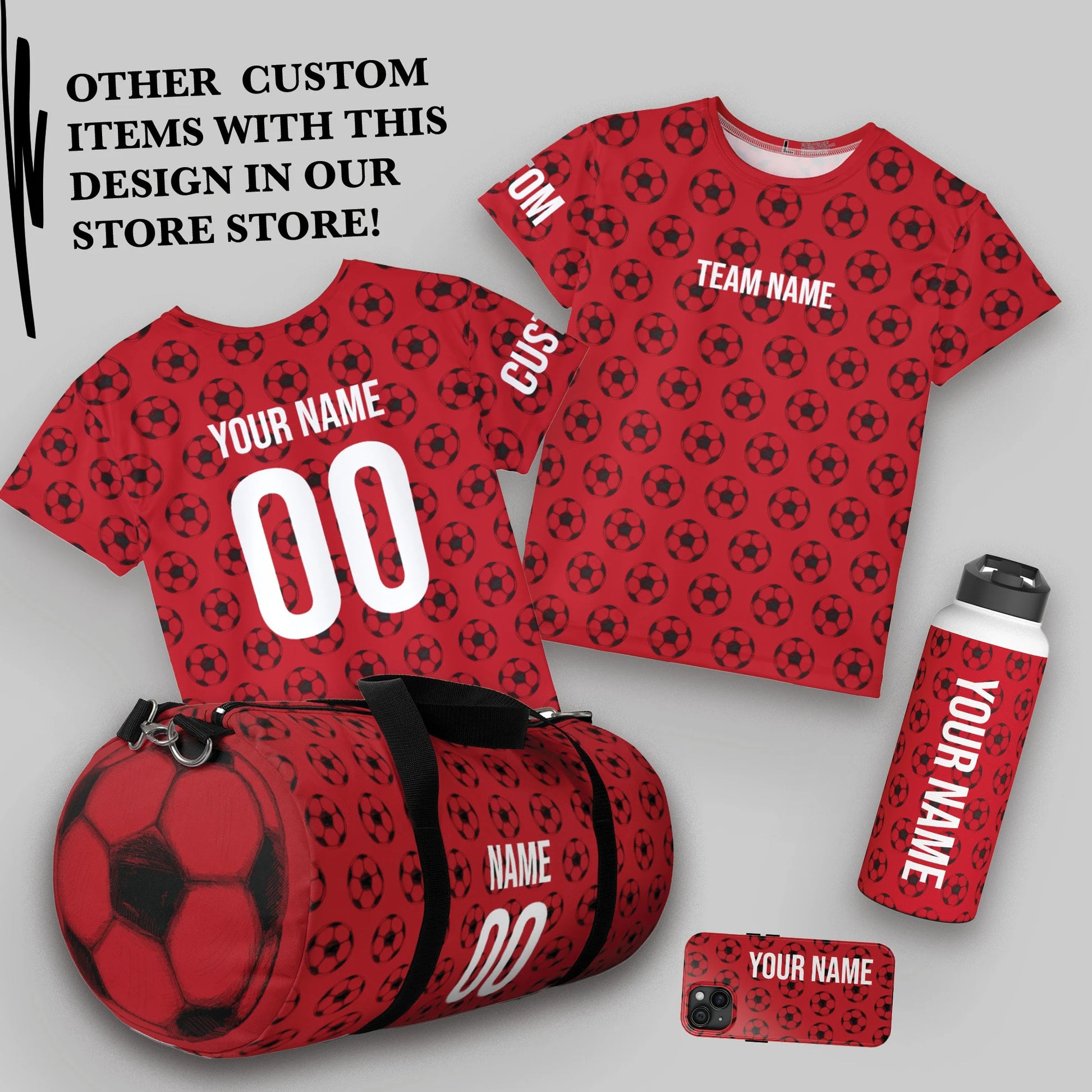 Matching Personalized Gifts: In addition to the Personalized Soccer Ball iPhone Case, the full collection includes matching Duffle Bags, Water Bottles, and Jerseys – all customizable with the same pattern! Perfect for soccer teams or dedicated fans, this collection makes a bold statement.