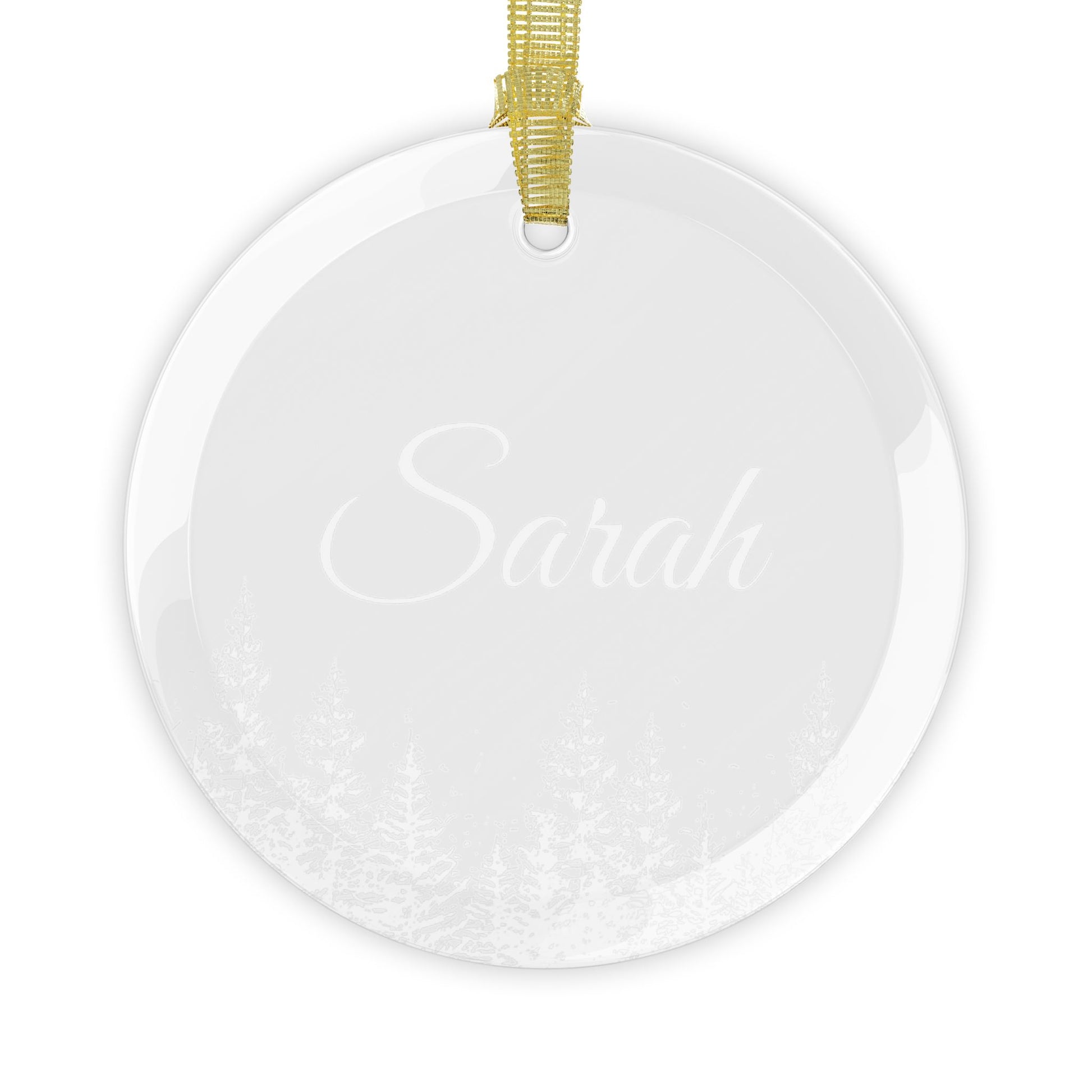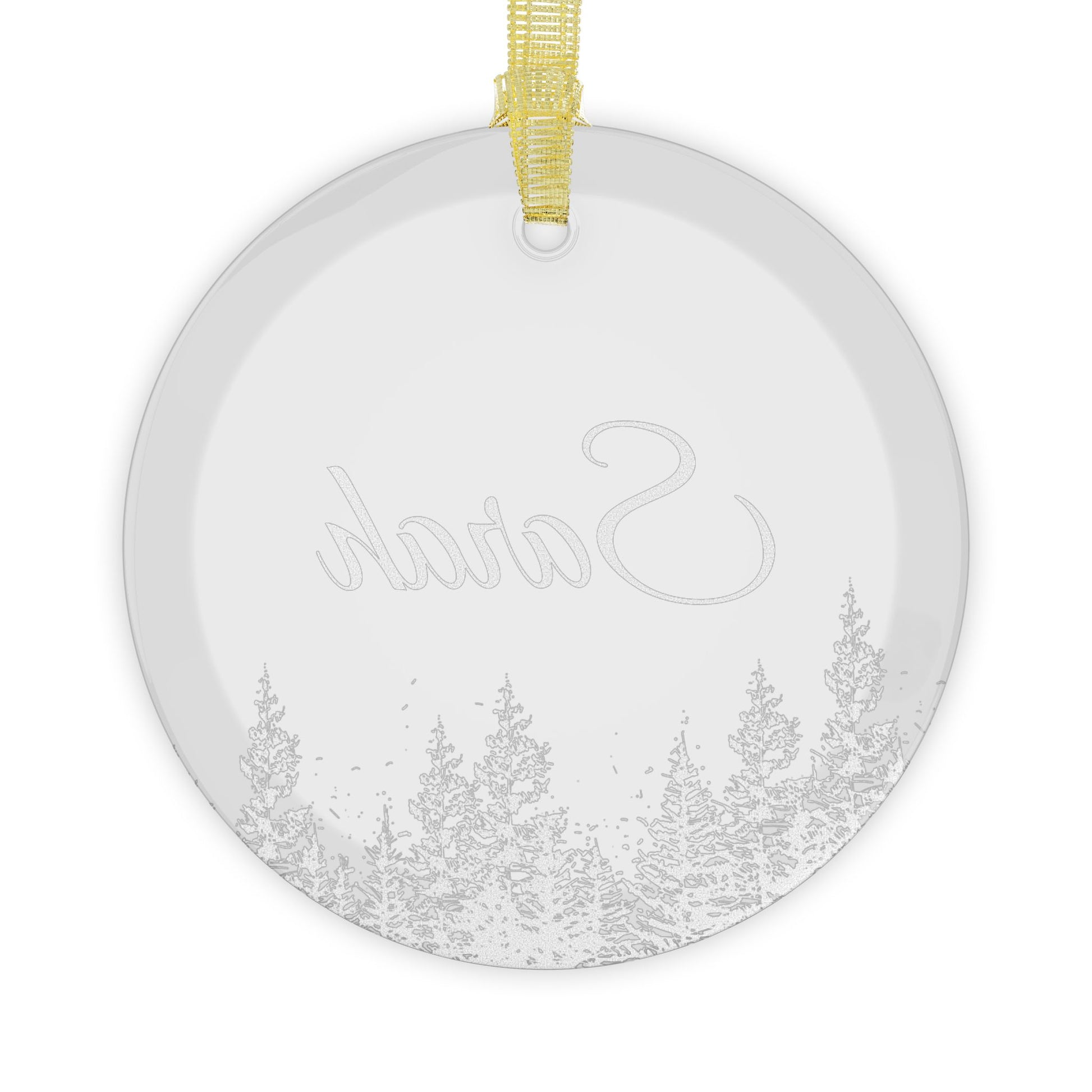 Add a personal touch with a custom name and tree illustration on these glass ornaments. Perfect for creating a festive and personalized atmosphere during the holiday season. Ideal for individuals looking for unique decorations for Christmas trees or gifts for loved ones.