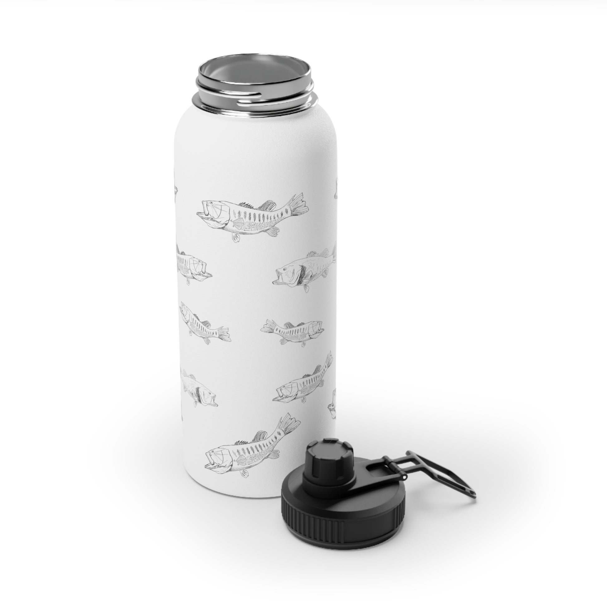 Largemouth Bass Pattern Water Bottle – Stainless Steel with Sports Lid